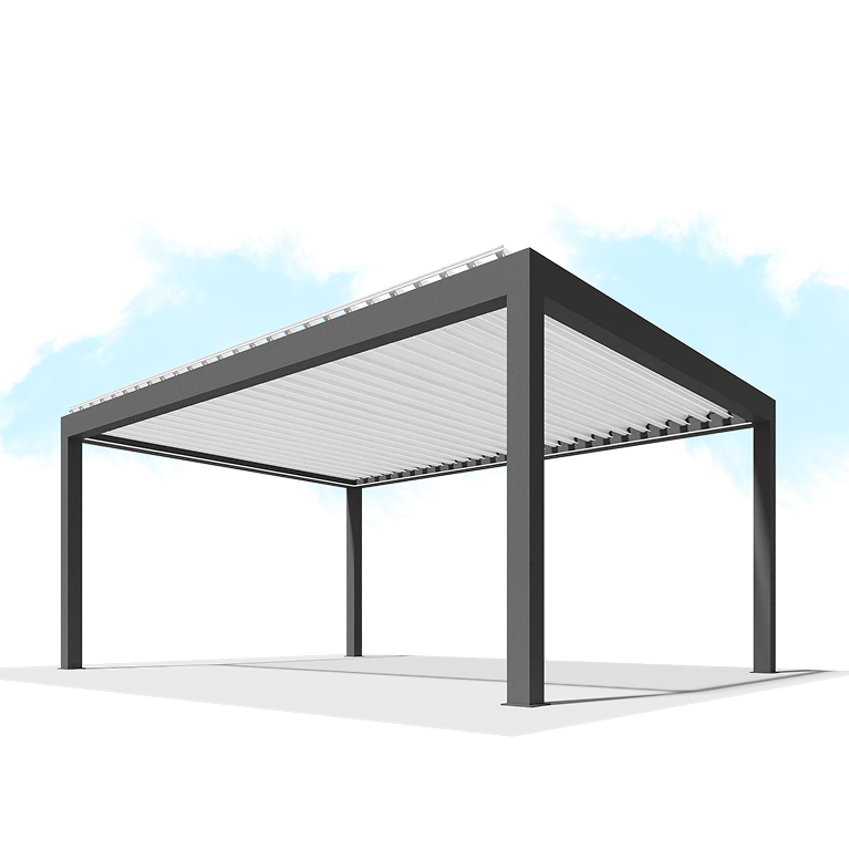 Модели пергол B700 из линейки Bioclimatic создают ощущение просторного и открытого пространства, надежно защищая от нежелательных внешних воздействий. Конструкцией таких систем предусмотрено синхронное смещение и поворот ламелей для регулировки доступа света и воздуха.