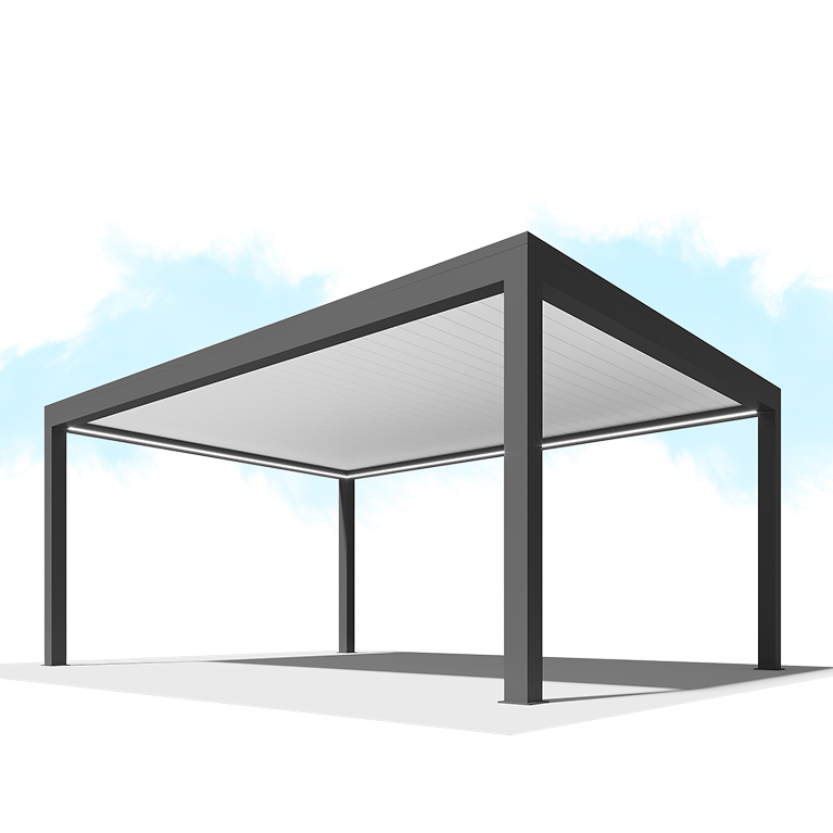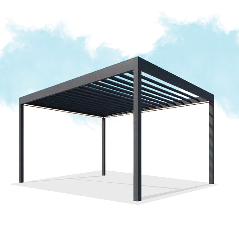 Поворотные ламели в перголах B400 и B500 из серии Bioclimatic вращаются вокруг своей оси, устанавливаются в нужном положении для точной настройки интенсивности естественного света, солнечного излучения. Аэродинамические свойства элементов обеспечивают непроницаемость крыши, а уплотнители – ее герметичность. Даже во время сильного дождя внутрь не проникает ни капли воды.